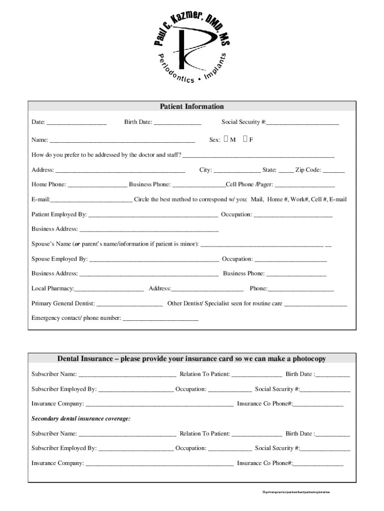 Patient Information Date: Birth Date: Name: Social Security #: Sex’M Show do you prefer to be addressed by the doctor and staff? Address: City: State: Zip Code: Home Phone: Business Phone: Cell