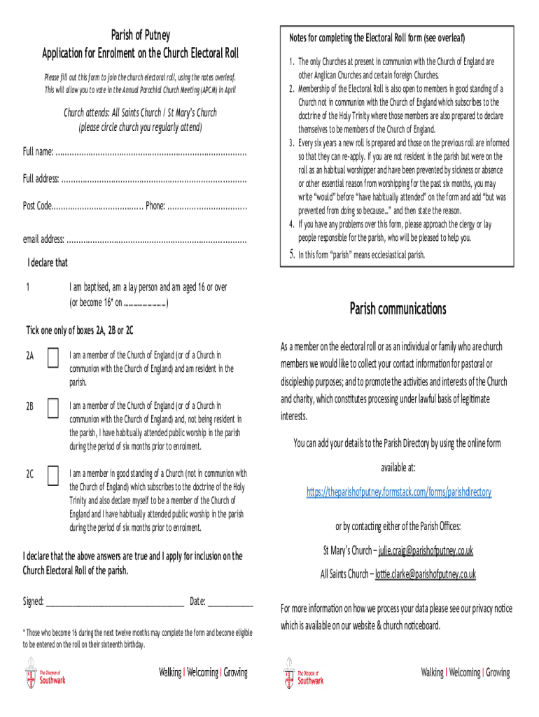 Get the free A GUIDE FOR CHURCH ELECTORAL ROLL OFFICERSThe electoral register and the 'open regis...