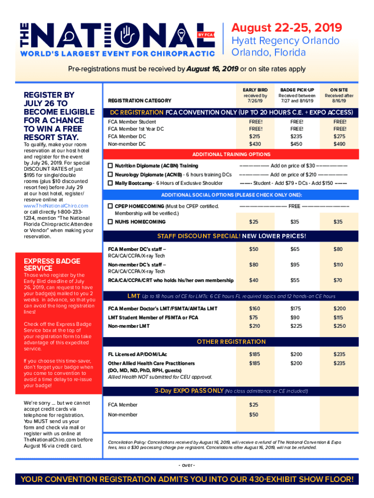 Preregistration must be received by August 16, 2019, or on site rates applyREGISTER BY
