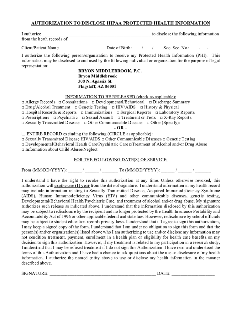 Get the free Sample Letter: Authorization to Release Medical RecordsHIPAA Authorization: Requirem...