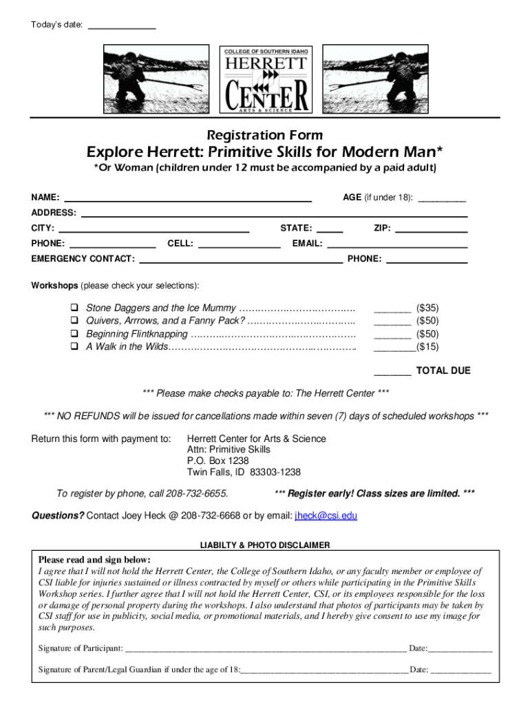 Get the free Registration Form Explore Herrett: Primitive Skills for ... - herrett csi