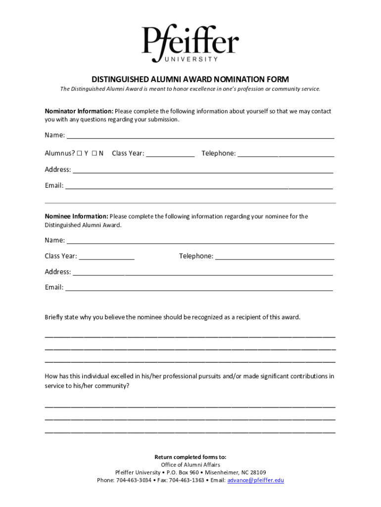 How to fill out nomination for alumni awards
