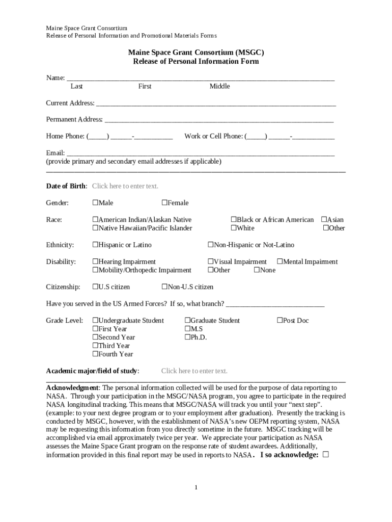 What is Maine Space Grant Consortium (MSGC) - cugr umaine Form?
