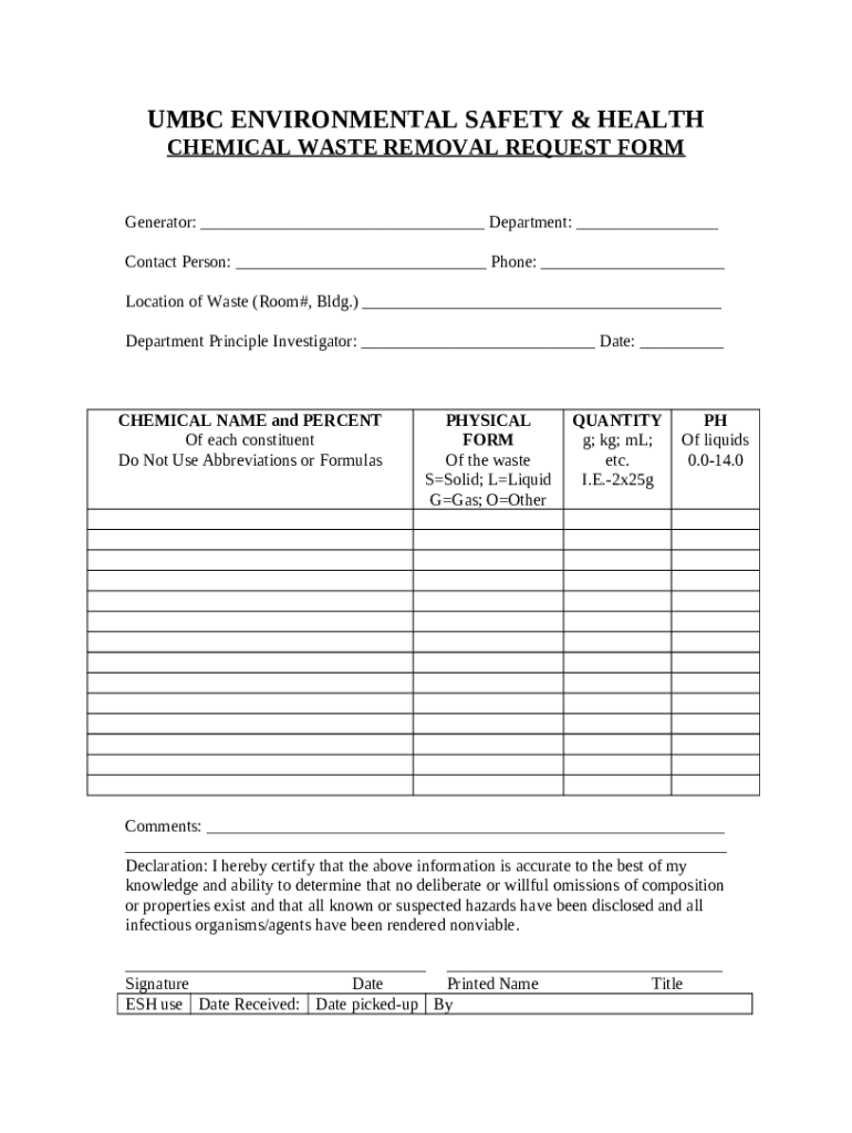 The BOSTON COLLEGE ENVIRONMENTAL HEALTH AND SAFETY LABORATORY ... - chemistry umbc is a writable document required to be submitted to the required address in order to provide certain info. It has to be filled-out and signed, which is possible manually in hard copy, or by using a particular software e. g. PDFfiller. It lets you fill out any PDF or Word document directly in your browser, customize it according to your requirements and put a legally-binding e-signature. Once after completion, you can easily send the BOSTON COLLEGE ENVIRONMENTAL HEALTH AND SAFETY LABORATORY ... - chemistry umbc to the relevant individual, or multiple individuals via email or fax. The template is printable too because of PDFfiller feature and options offered for printing out adjustment. In both electronic and in hard copy, your form will have a organized and professional outlook. You can also save it as the template for further use, so you don't need to create a new document from scratch. All that needed is to customize the ready form.