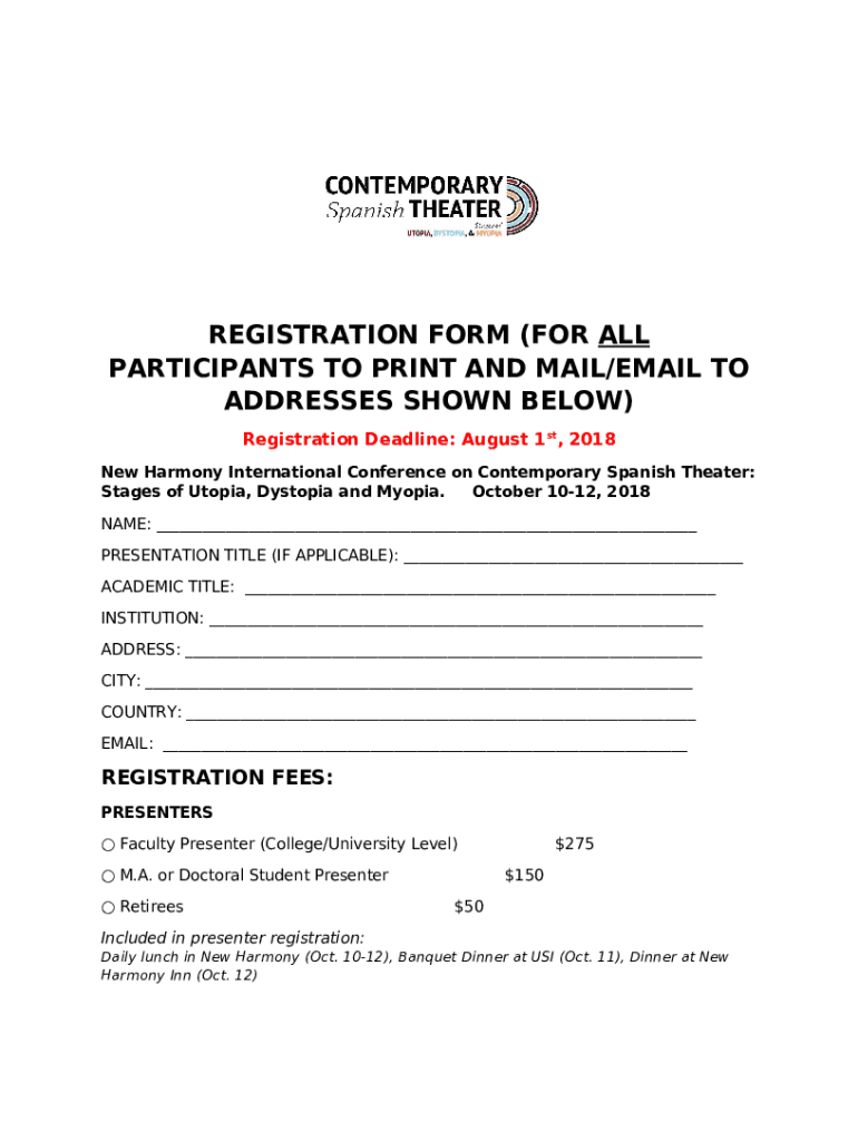 Instructions for the REGISTRATION (FOR ALL PARTICIPANTS TO PRINT AND MAIL/EMAIL TO ADDRESSES SHOWN BELOW) form