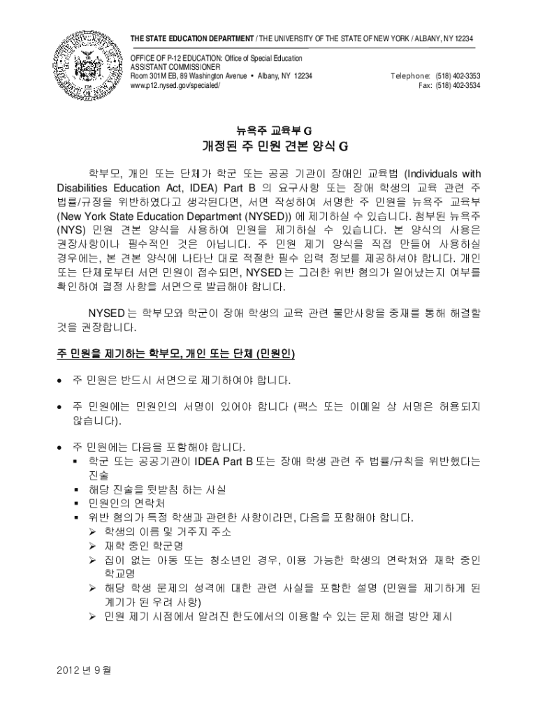 Get the free New York State School for the Deaf Revised Sample State Complaint Form Korean. Revis...