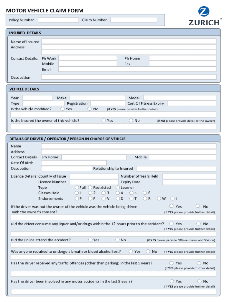 How to fill out zurich motor vehicle claim