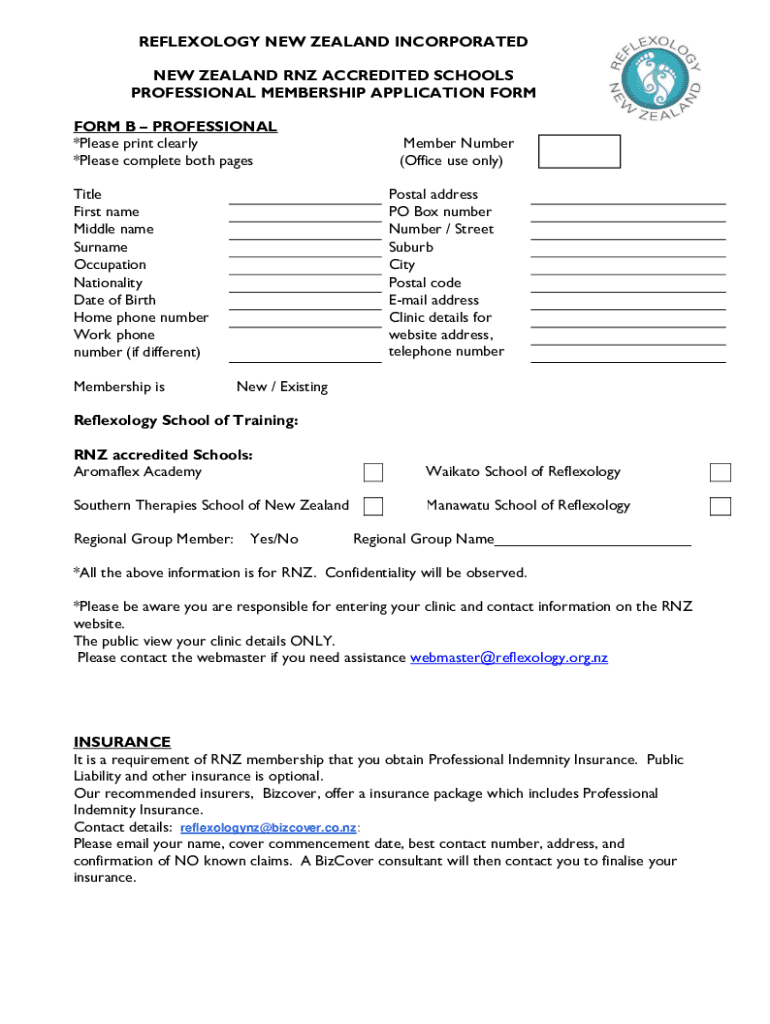 Get the free FORM B PROFESSIONAL - reflexology.nz