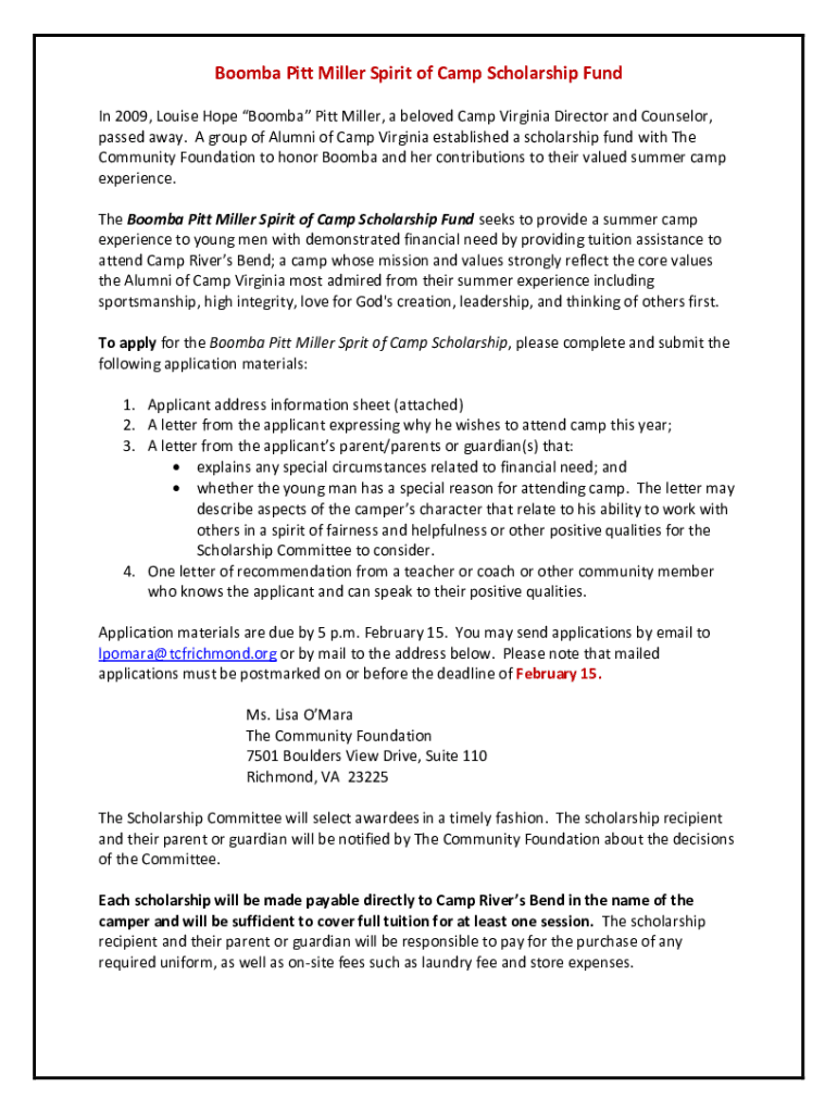 Roomba Pitt Miller Spirit of Camp Scholarship Fund