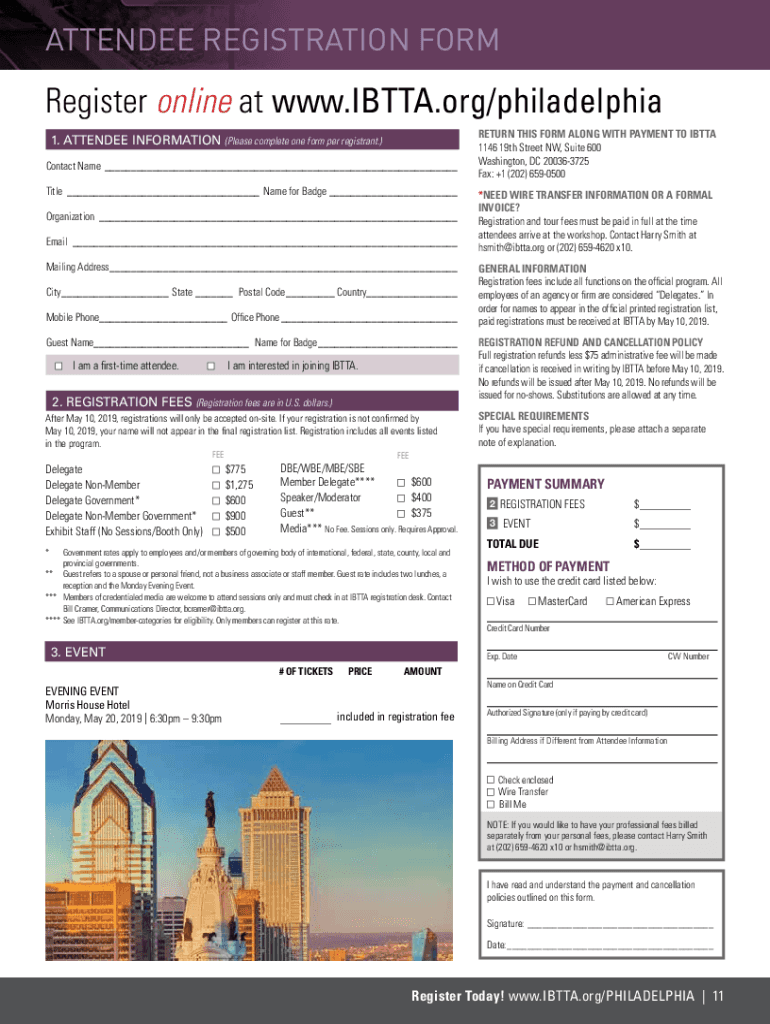 ATTENDEE REGISTRATION Preregister online at www.IBTTA.org/philadelphia 1. ATTENDEE INFORMATION (Please complete one form per registrant.) Contact Name Title Name for Badge Organization Email Mailing