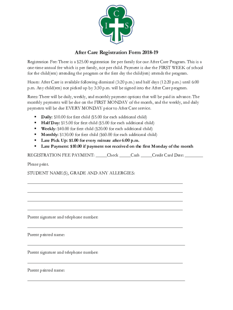 Registration Fee: There is a $25.00 registration fee per family for our After Care Program. This is a