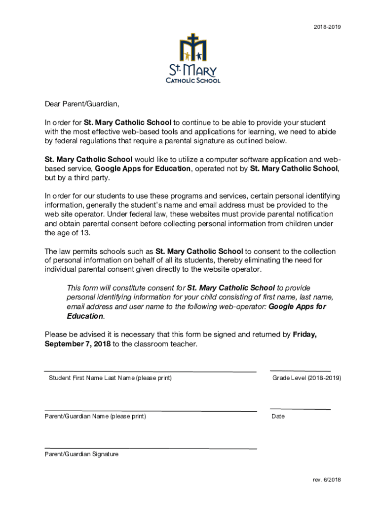 In order for St. Mary Catholic School to continue to be able to provide your student