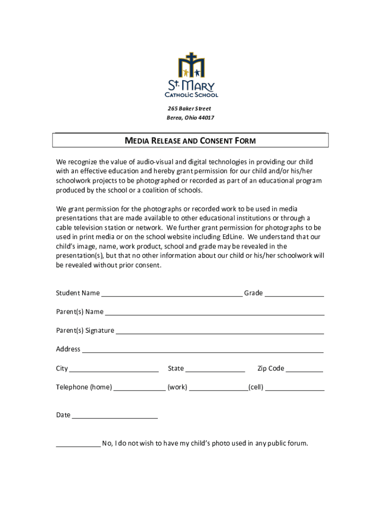 265 Baker Streetcar, Ohio 44017MEDIA RELEASE AND CONSENT Form recognize the value of audiovisual and digital technologies in providing our child with an effective education and hereby grant permission for our child and/or his/her
