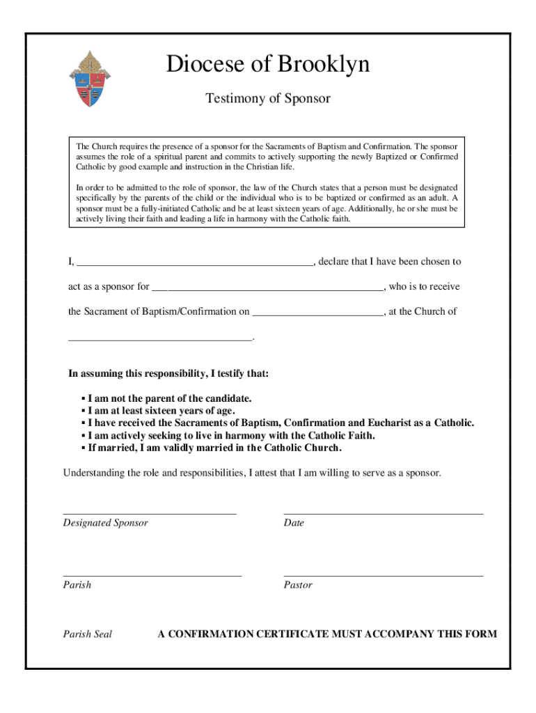 Testimony of Sponsored Church requires the presence of a sponsor for the Sacraments of Baptism and Confirmation. The sponsor