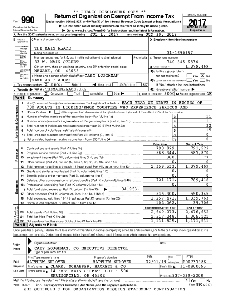 ** PUBLIC DISCLOSURE COPY ** Form990Return of Organization Exempt From Income Tax OMB No. 15450047 Do not enter social security numbers on this form as it may be made public. Open to Public Inspection