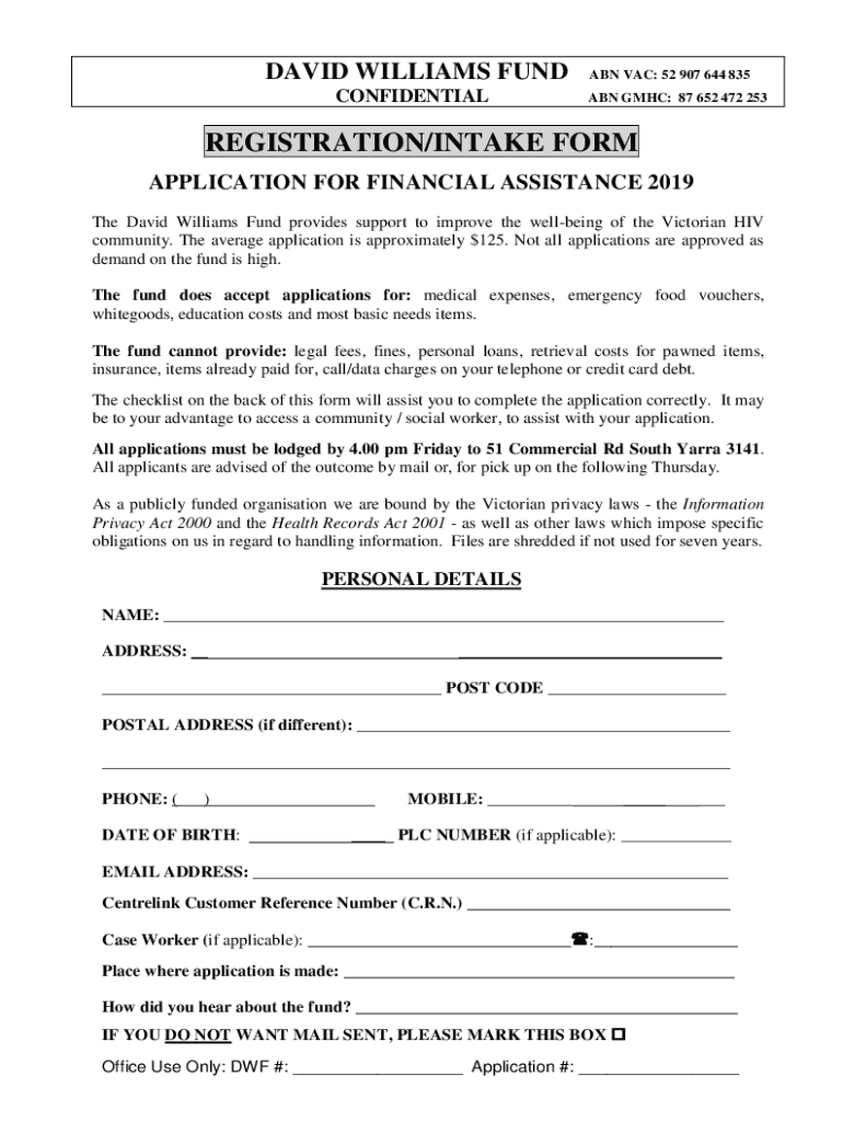 APPLICATION FOR FINANCIAL ASSISTANCE 2019