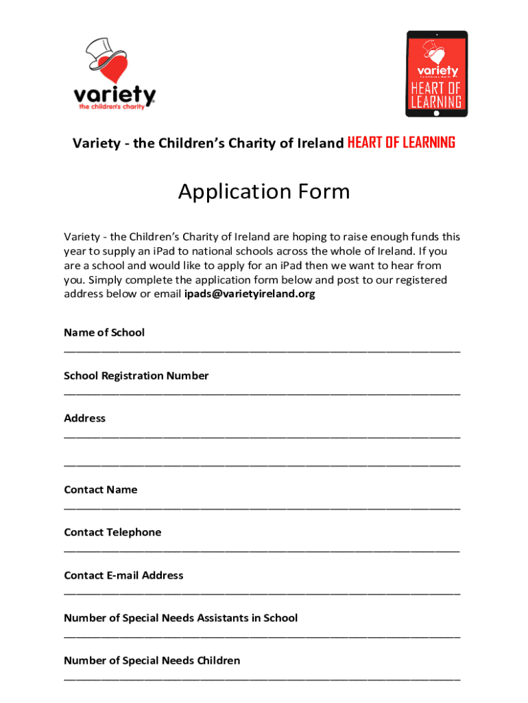 Variety the Children's Charity of Ireland HEART OF LEARNINGApplication Form Variety the Children's Charity of Ireland are hoping to raise enough funds this year to supply an iPad to national schools
