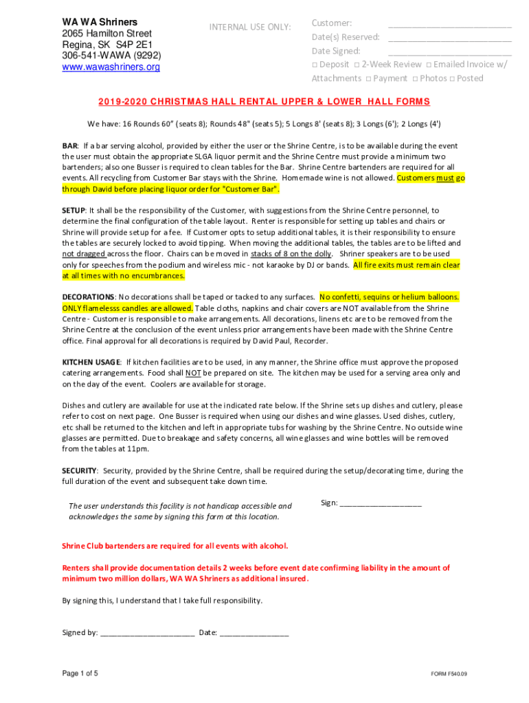 WA Shriner's 2065 Hamilton Street Regina, SK S4P 2E1 306541WAWA (9292) www.wawashriners.orgINTERNAL USE ONLY:Customer: Date(s) Reserved: Date Signed: Deposit 2Week Review Emailed Invoice w/ Attachments