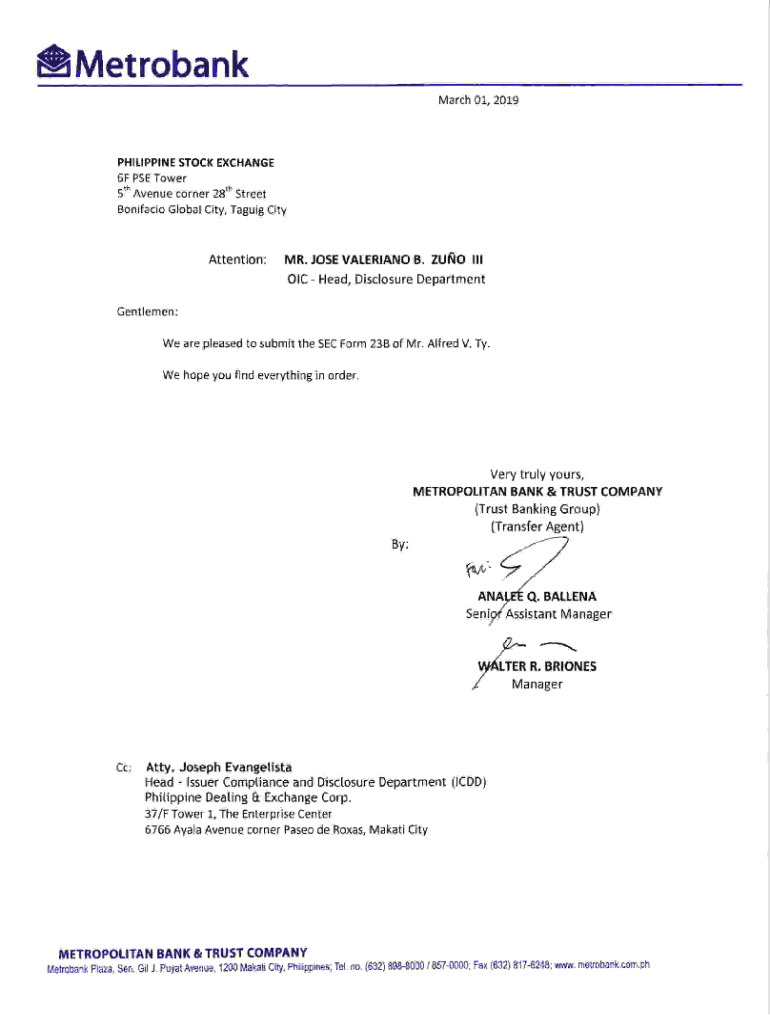 Metrolink March 01, 2019PH!TIPP!NE STOCK EXCHANGE 6F PSE TowerAvenue corner 28th Street Bonifacio Global City, Lagoon City5tnAttention:MR. JOSE VALERIAN g. multi all OIC Head, Disclosure DepartmentGentlemen