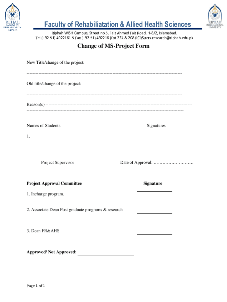 Faculty of Rehabilitation & Allied Health Sciences Fifth WISH Campus, Street no.5, Fair Ahmed Fair Road, H8/2, Islamabad. Tel (+9251) 49221615 Fax (+9251) 492216 (Ext 237 & 208 RCS)RCS.research fifth.edu.change