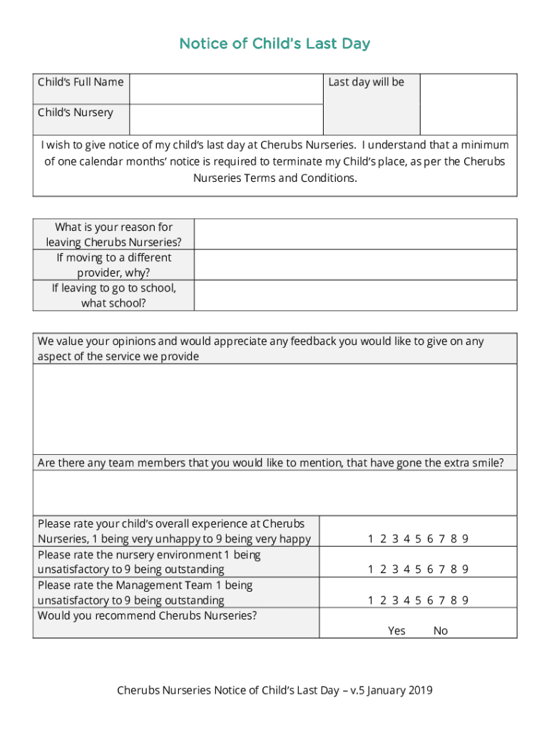 Get the free Notice of Childs Last Day Form (v.5 January 2019).docx