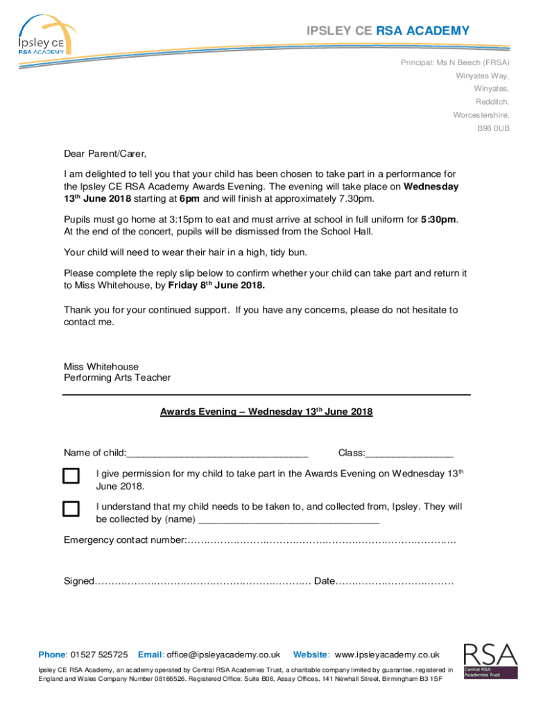 B98 0UBDear Parent/Carer,