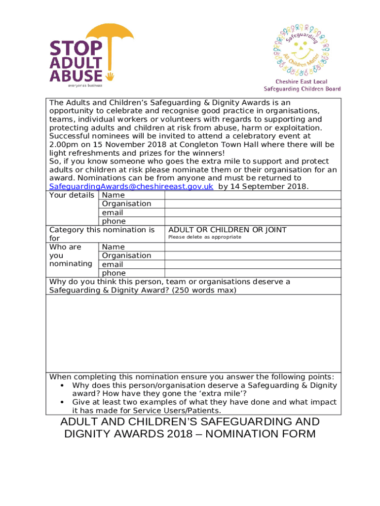 Nominations sought for Safeguarding & Dignity Awards in ... template instructions