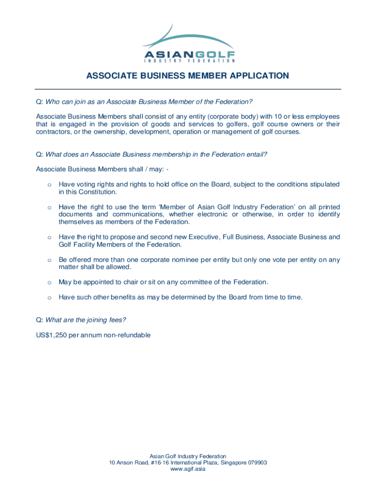 ASSOCIATE BUSINESS MEMBER APPLICATION