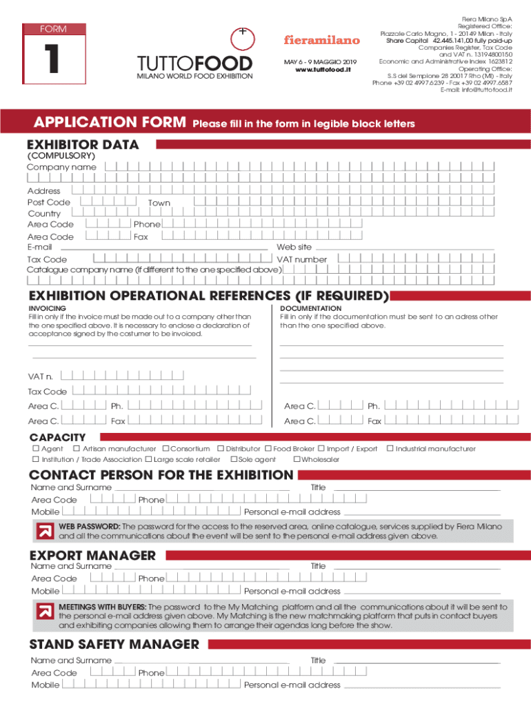 Fair Milano Spa Registered Office: Piazza Carlo Mango, 1 20149 Milan ItalyFORM1MAY 6 9 MAGGIE 2019 www.tuttofood.itAPPLICATION FORMCompanies Register, Tax Code and VAT n. 13194800150 Economic and