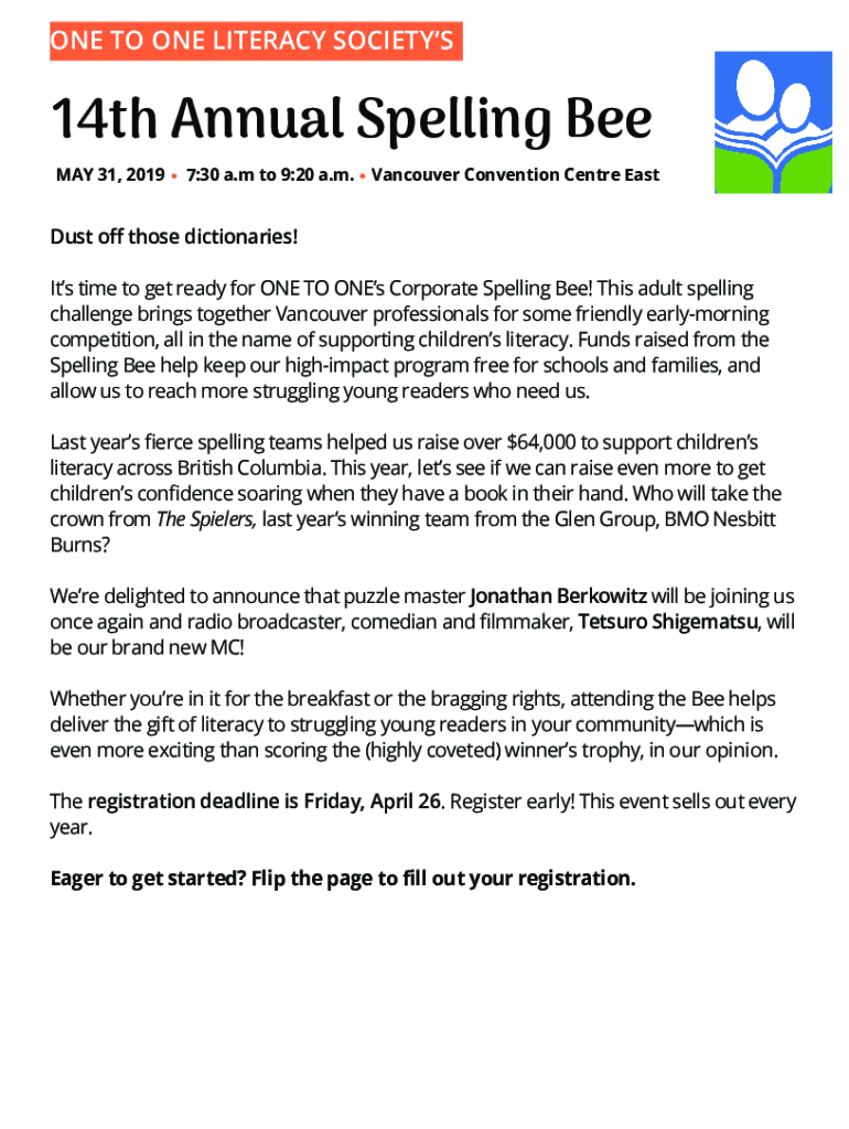 ONE TO ONE LITERACY SOCIETYS14th Annual Spelling Bee