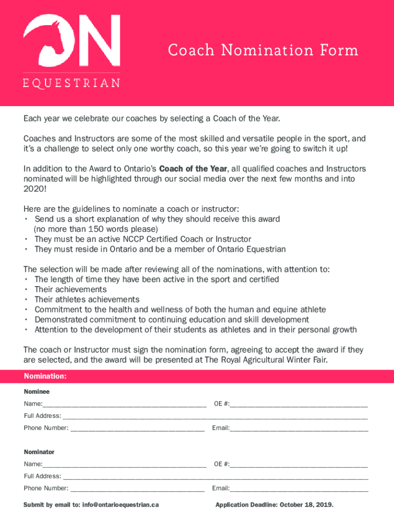 Get the free Coach of the Year Nomination Form - Ontario Equestrian