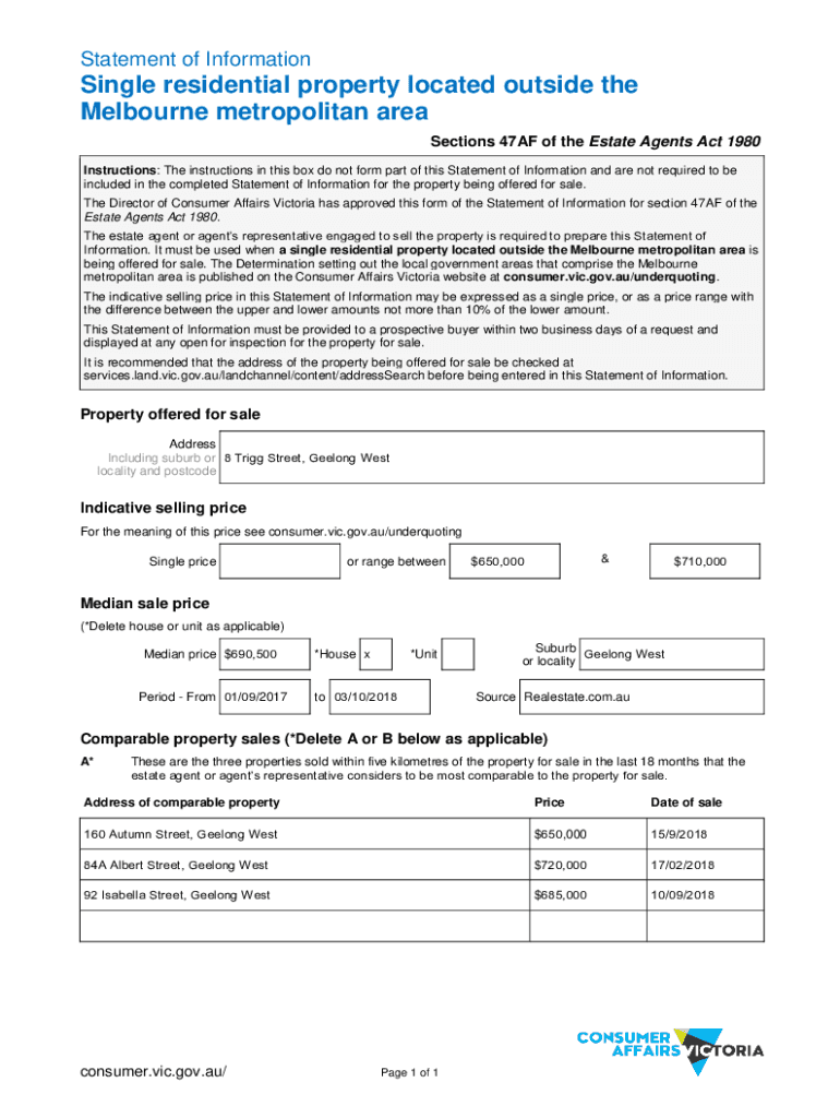 Statement of InformationSingle residential property located outside the