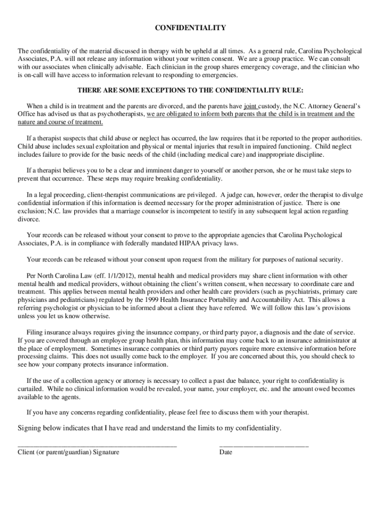 Get the free THERE ARE SOME EXCEPTIONS TO THE CONFIDENTIALITY RULE
