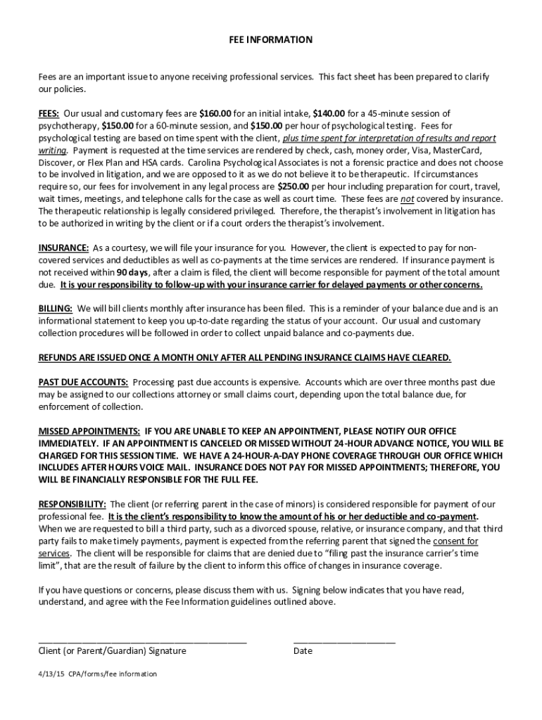 Fees are an important issue to anyone receiving professional services. This fact sheet has been prepared to clarify