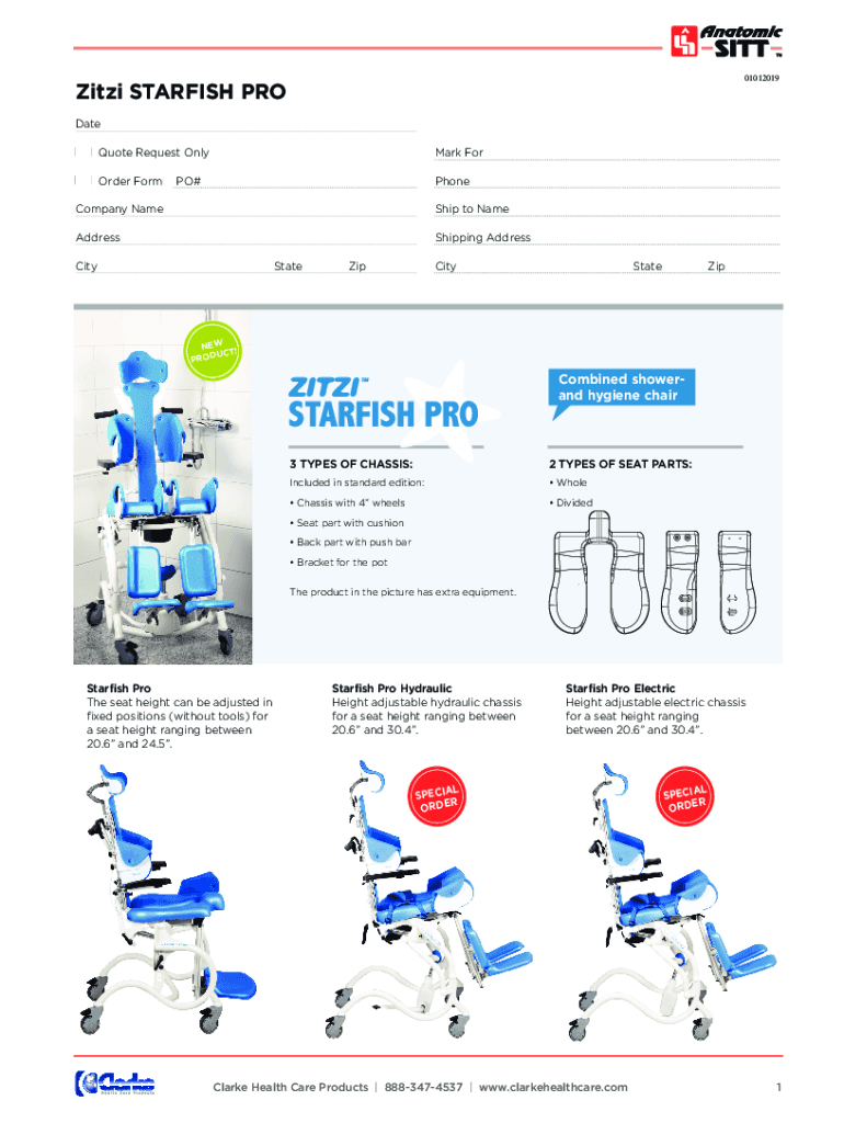 Clear Form 01012019Zitzi STARFISH PRO Date Quote Request Only Mark Forwarder FormPhonePO#Company Name Ship to NameAddressShipping AddressCityStateZipCityStateZipNEW ACT! Recombined shower and hygiene