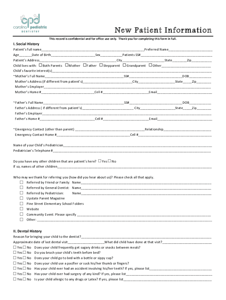 New Patient InformationThisrecordisconfidentialandforofficeuseonly. Thank you.