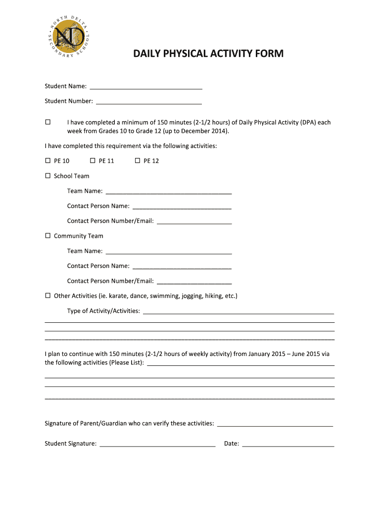 Moreover, the Daily Physical Activity Form also acts as a means to gain consent from parents or guardians, ensuring they are informed and supportive of their child's physical activities. This document forms a crucial link between students, parents, and educational institutions.