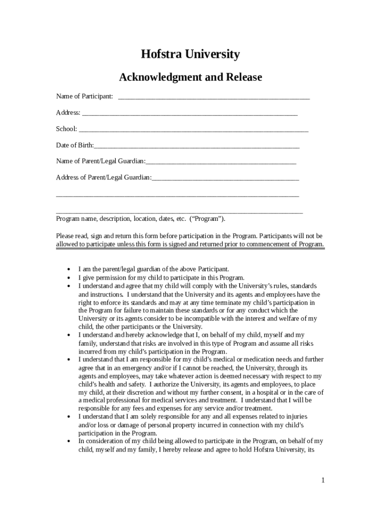 Host University Acknowledgment and Release Name of Participant: Address: School: Date of Birth: Name of Parent/Legal Guardian: Address of Parent/Legal Guardian: Program name, description, location,
