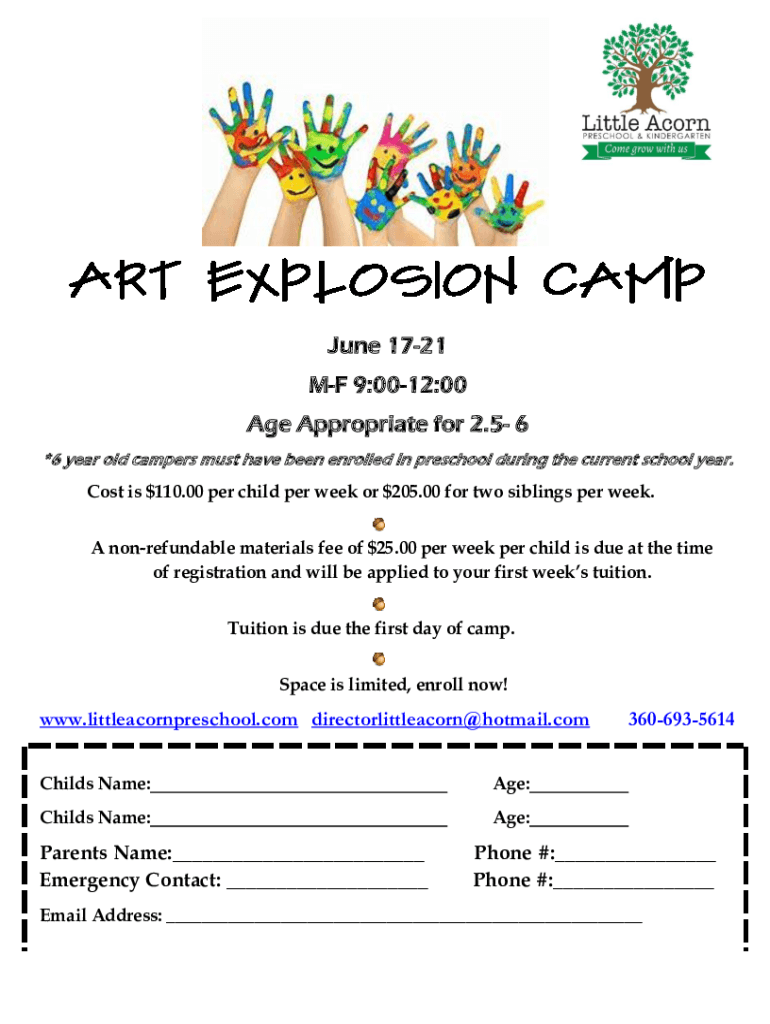 ×6-year-old campers must have been enrolled in preschool during the current school year. Cost is $110.00 per child per week or $205.00 for two siblings