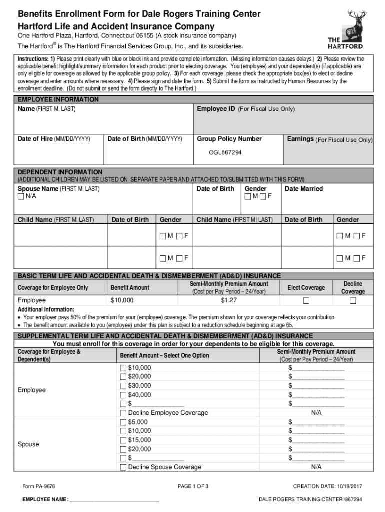 Benefits Enrollment Form for Dale Rogers Training Center