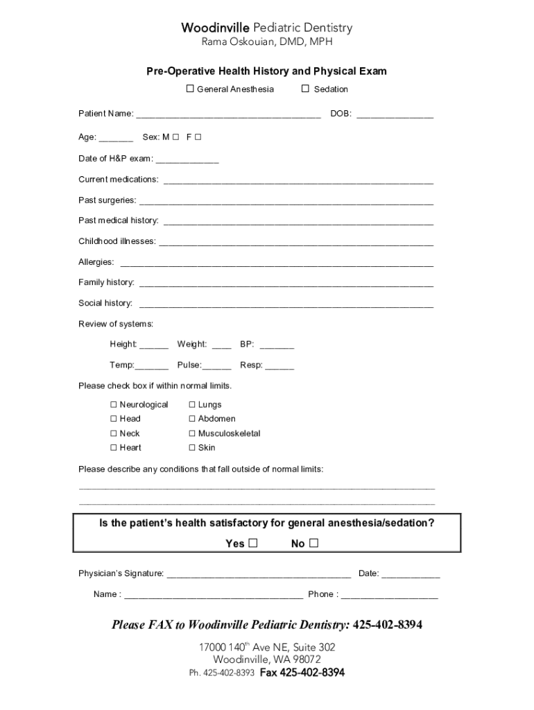 Get the free Pre-operative Health History and Physical Exam