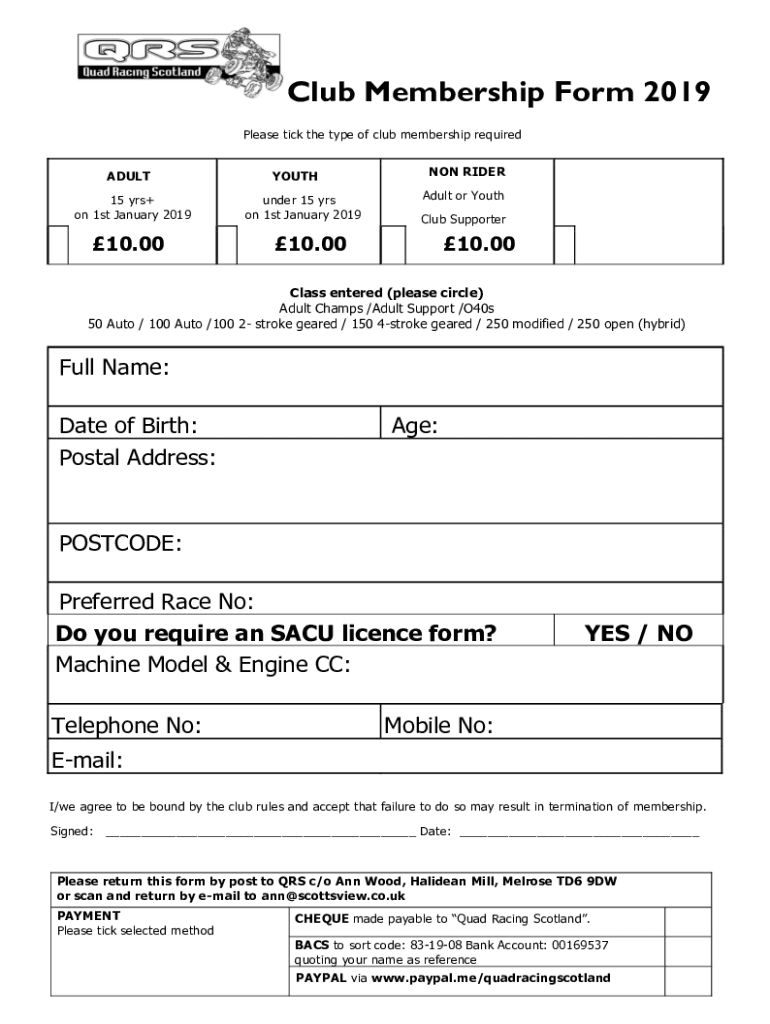 Club Membership Form 2019