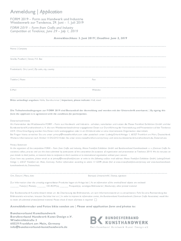 FORM 2019 Form AUS Handwork UND Industries FORM 2019 Form from Crafts and Industry Wettbewerb our Tendency, 29. June 1. July 2019 Competition at Tendency, June 29 July 1, 2019, Our Tendency finder