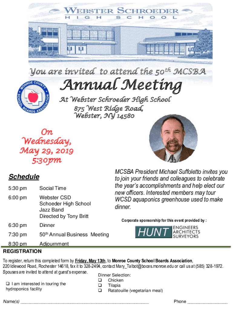 You are invited to attend the 50th MCSBAAnnual Meeting At Webster Schroeder High School