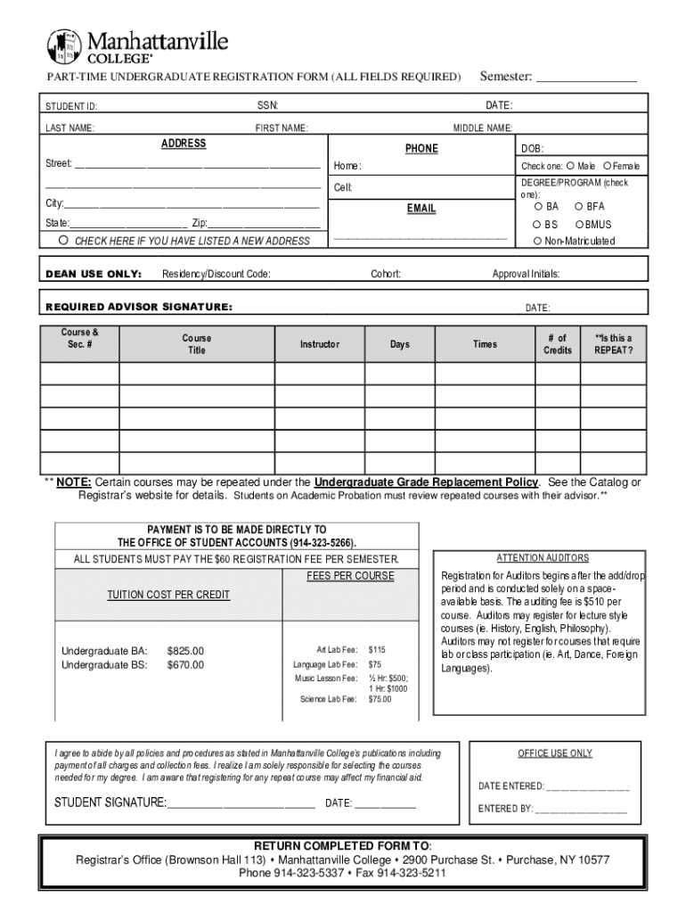 Get the free PART-TIME UNDERGRADUATE REGISTRATION FORM (ALL FIELDS ...