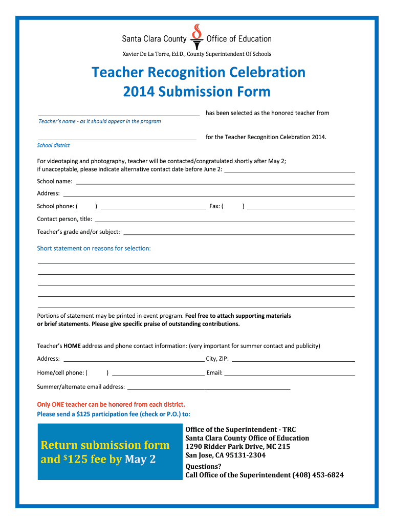 Get the free Teacher Recognition Celebration 2014 Submission Form - mhft ca aft