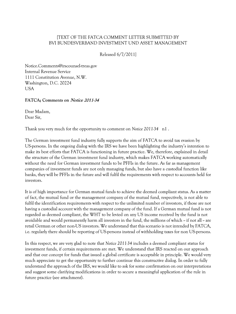 TEXT OF THE FATWA COMMENT LETTER SUBMITTED BY BVI BUNDESVERBAND INVESTMENT UND ASSET MANAGEMENT Released 6/7/2011 Notice. Comments irscounsel-treas.gov Internal Revenue Service 1111 Constitution Avenue,