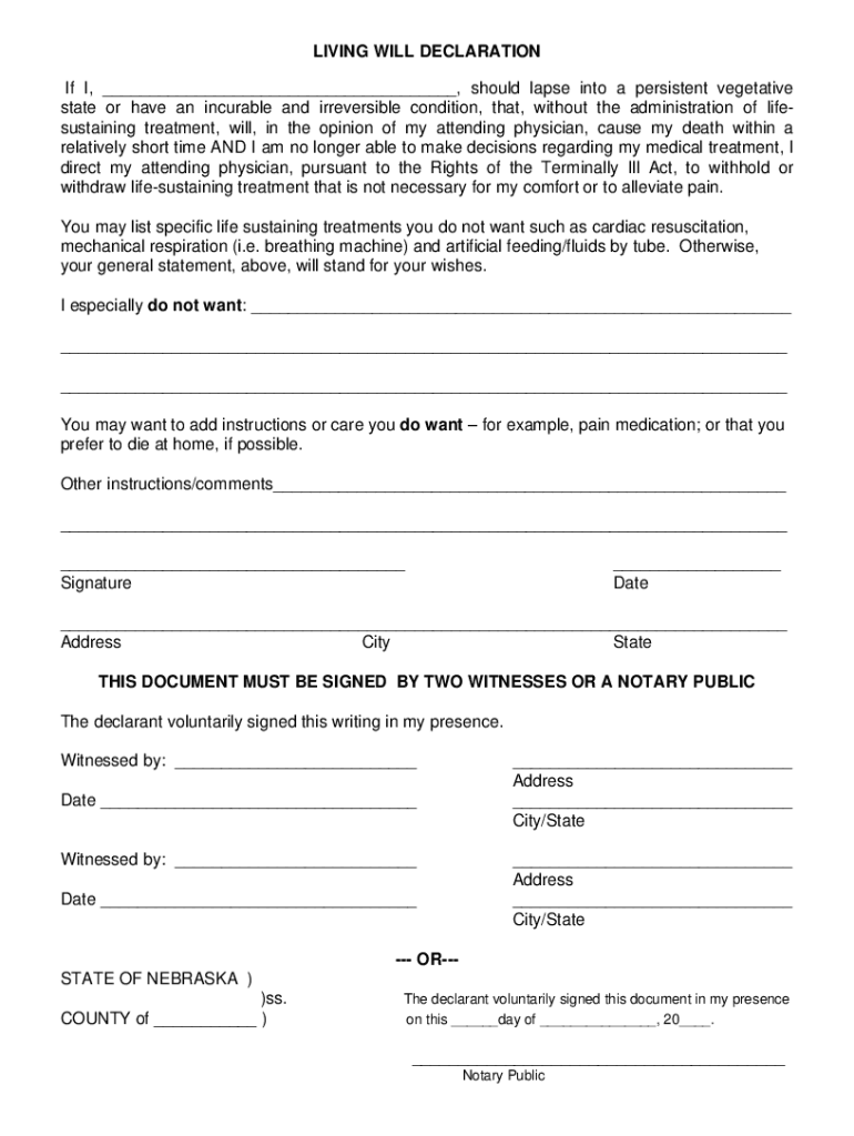 Get the free Nebraska Living Will Declaration i - Nebraska Department of ...