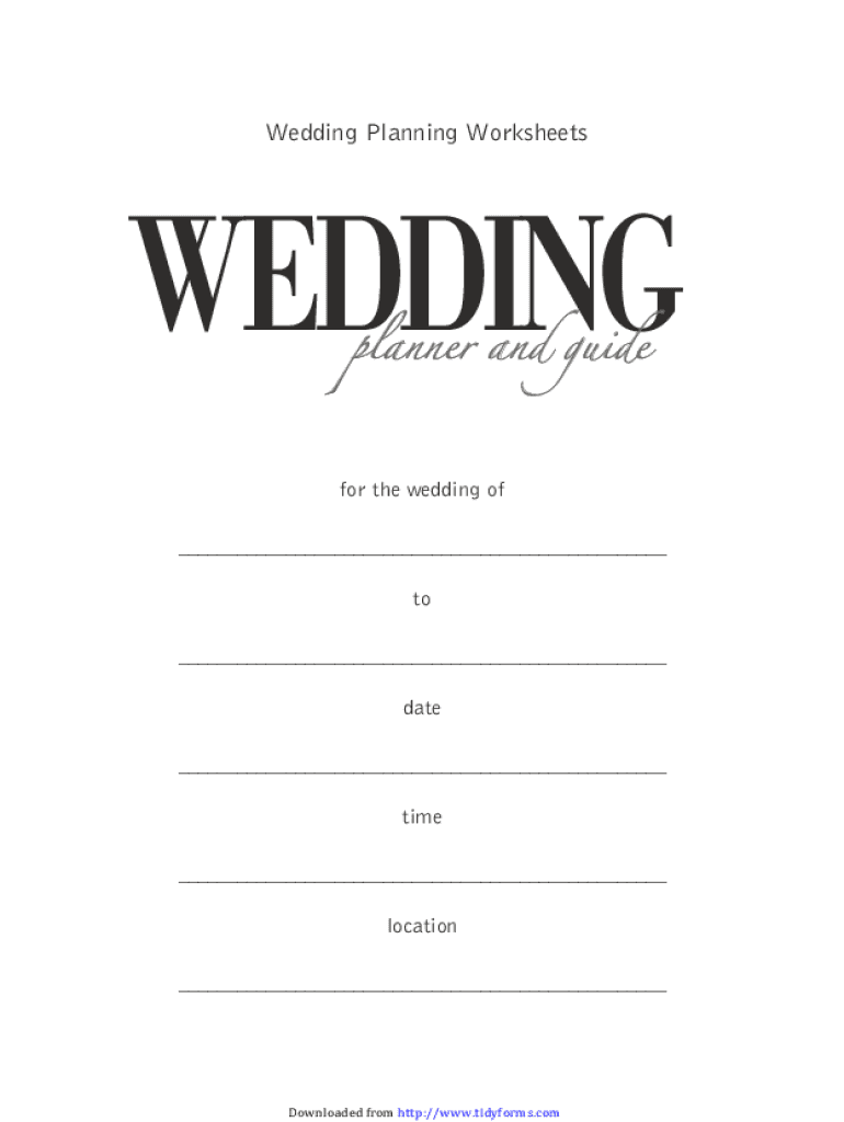 Wedding Planning WorksheetsWEDDING planner and guide for the wedding of to date time location Downloadedfromhttp://www.tidyforms.comCalendar Checklist The following checklist is an ideal timetable.