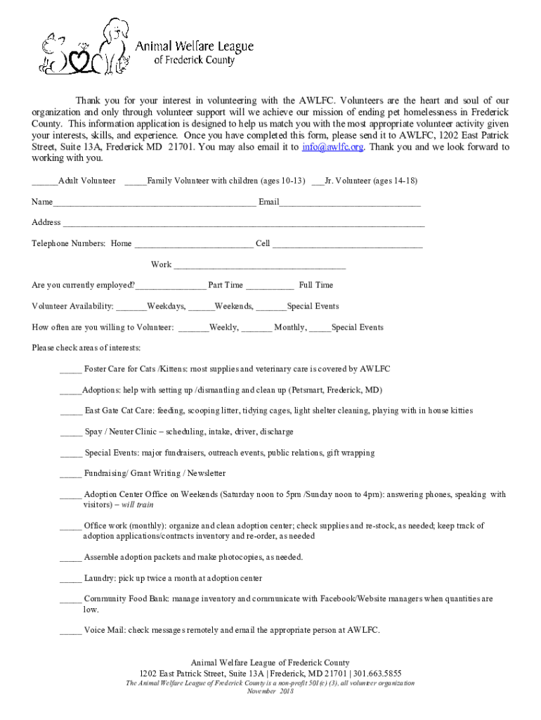 Get the free Online awlfc AWL Volunteer Application 022013docx ...